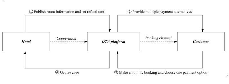 Facing stiff competition, online travel agencies (OTAs) are dedicating to provide customer-centric payment service in hotel online booking, which poses challenges for hotels and customers to make optimal strategies. This paper studies the optimal Stackelberg decisions and strategic interactions of a hotel and a customer in online booking through OTA with customer-centric payment service. The results show that refund rate has great effect on the customer’s payment decision, while transaction cost has great influence on the hotel’s operational decision. When the refund rate is greater than a threshold, the customer prefers online payment. Being a leader in the Stackelberg game, the hotel can induce customers to choose the payment option with the lowest transaction cost by setting a refund rate.