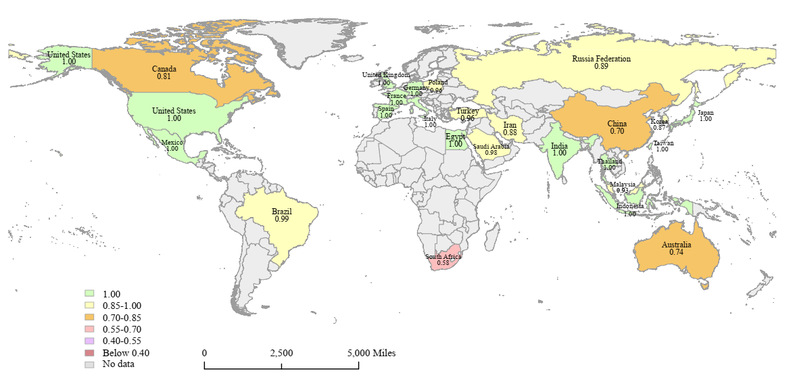 Fig. 1. Geographical distribution of carbon emission performance